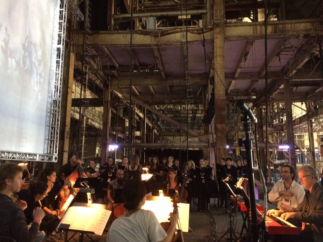 World premiere of live score + film on 25-foot screen with 100+ member ensemble in the Hearn Generating Station at Toronto’s international Luminato arts Festival.